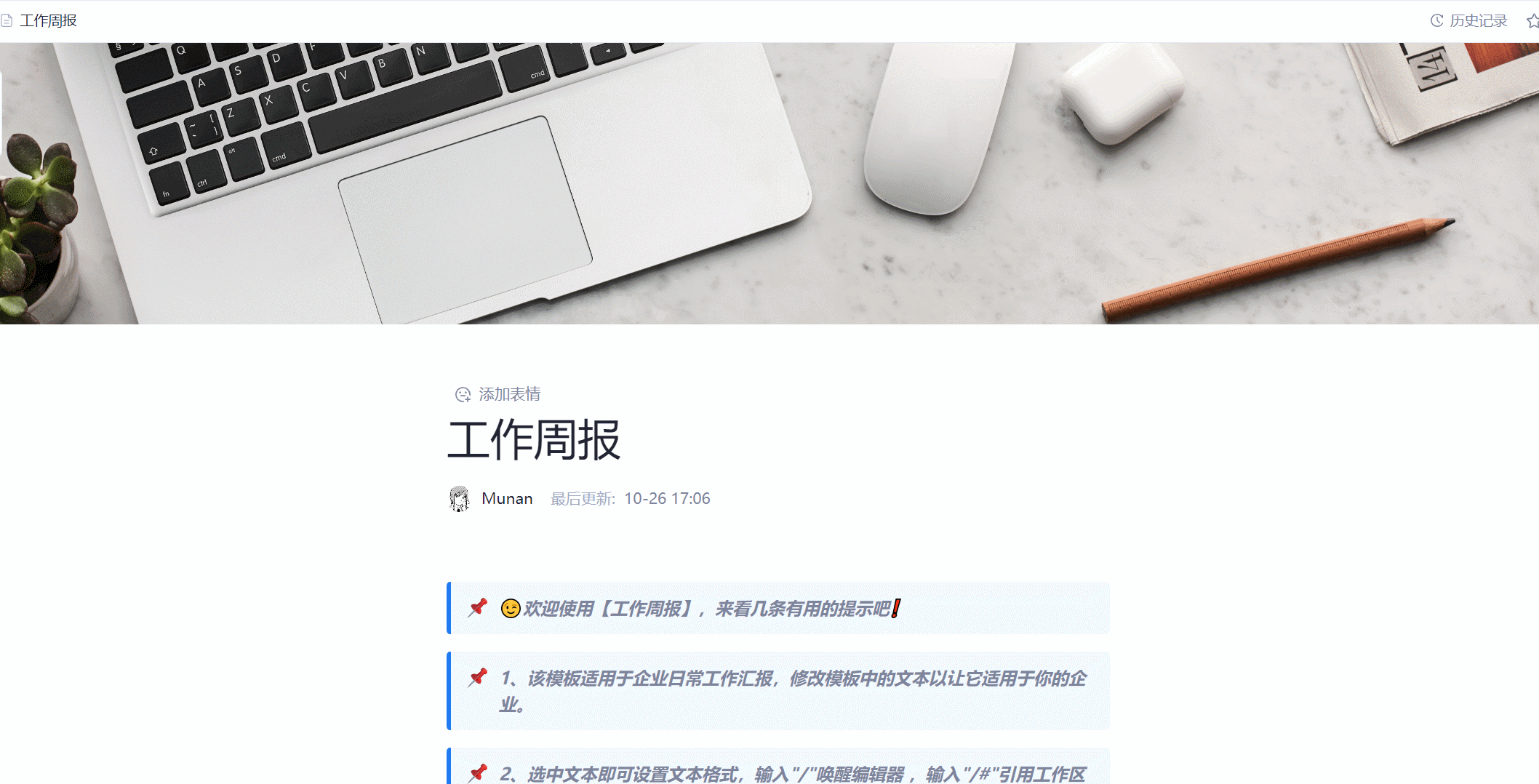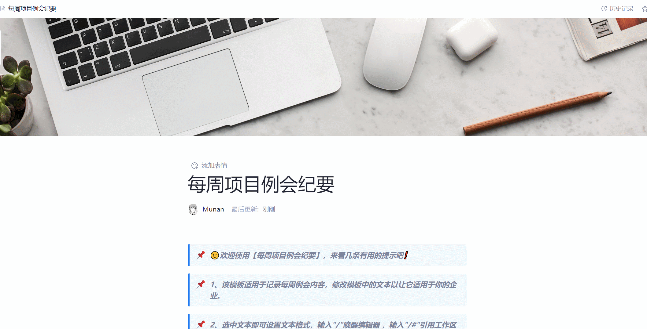 不用那么麻烦,用「每周项目例会纪要」,边听边记。