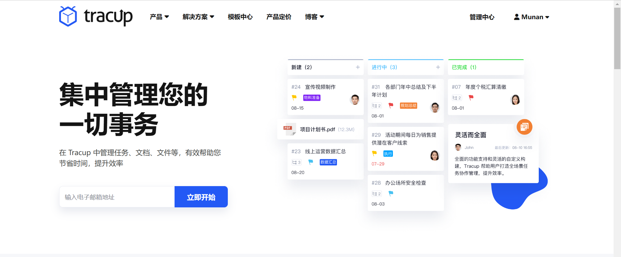 Tracup是一款基于云技术的协同办公和项目管理平台,它可以帮助企业提高工作效率、减少沟通障碍、提升信息安全性和团队协作能力。Tracup平台的主要特点是其协同办公和项目管理功能,它可以帮助企业实现全方位的项目管理,包括任务分配、进度跟踪、文件共享、群组聊天和数据分析等。