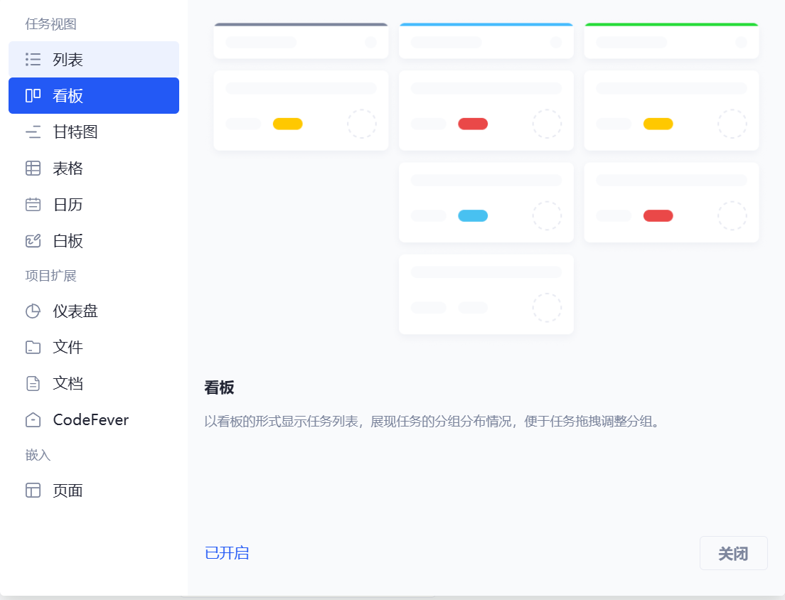 看板是一种视觉化的项目管理工具,可以帮助项目团队更好地了解项目的进度和任务分配情况。看板通常包括三个区域:待办事项、进行中的事项和已完成的事项。项目团队可以将任务卡片移动到不同的区域,以表示任务的状态。这种方法可以帮助团队成员更好地了解项目的进展情况,从而更好地协作。