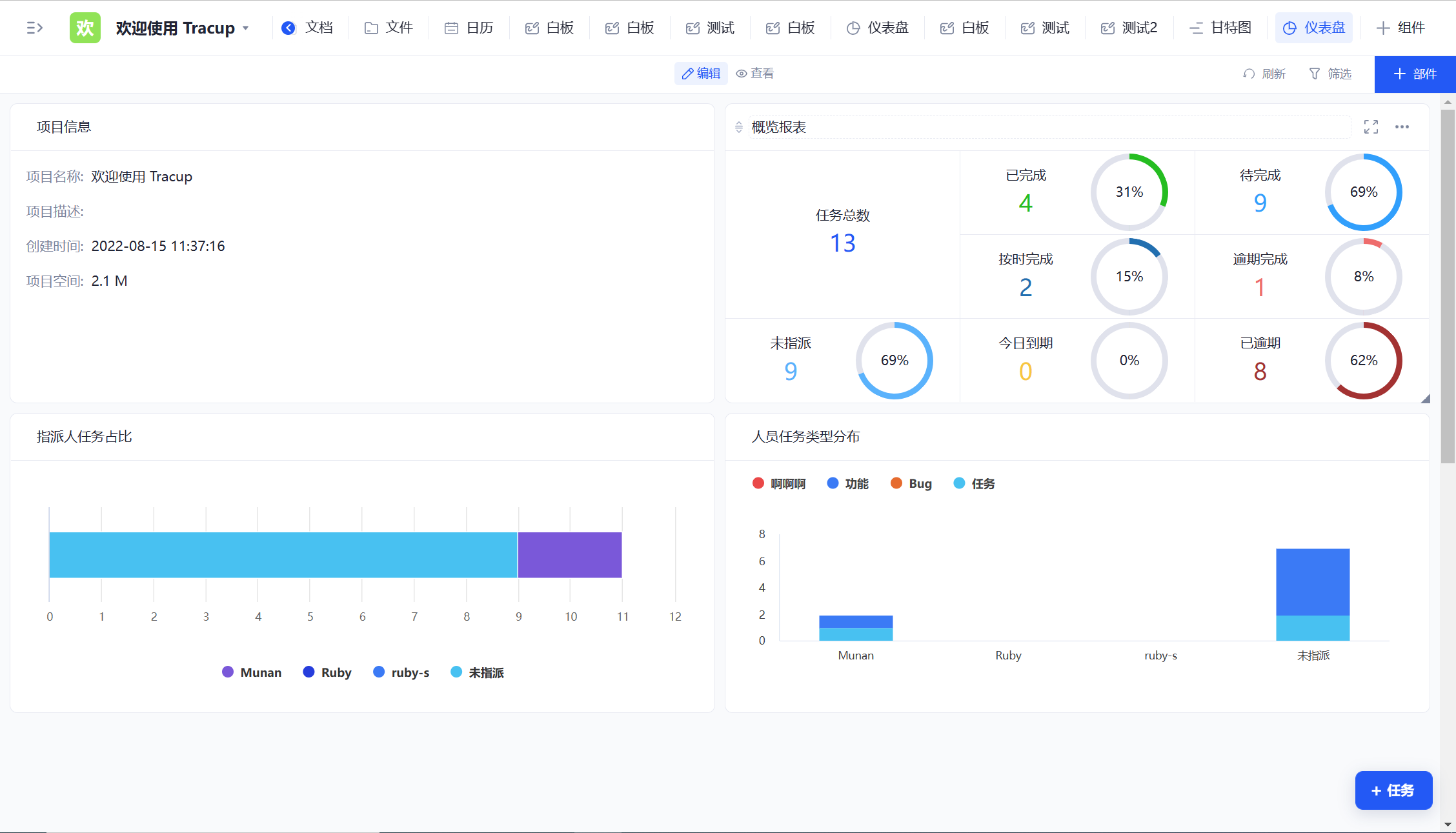 总之,Tracup的数据分析功能可以帮助用户更好地了解项目的各个方面,从而更好地把握项目进展和问题。用户可以根据自己的需求选择不同的数据分析工具,提高项目管理的效率和质量。