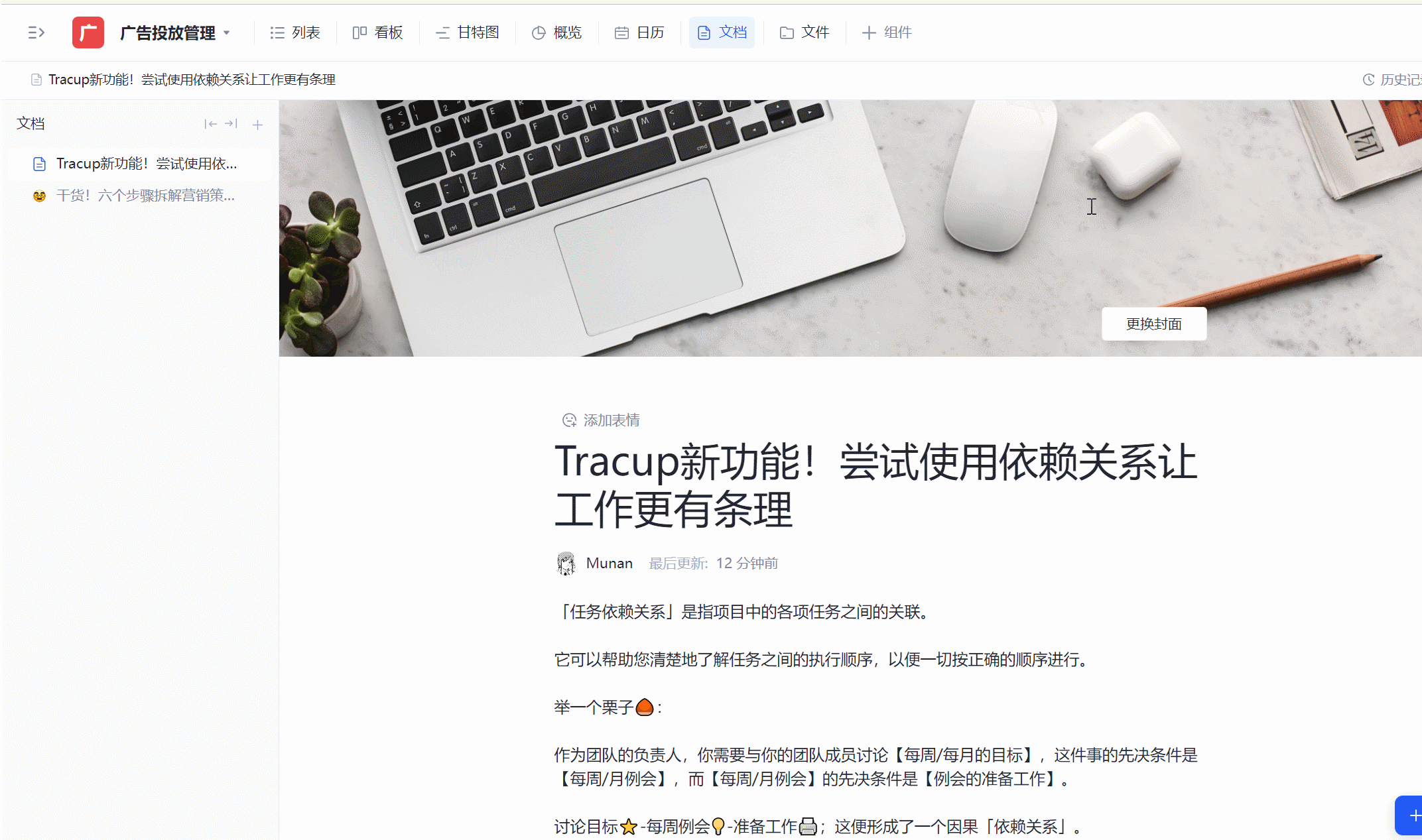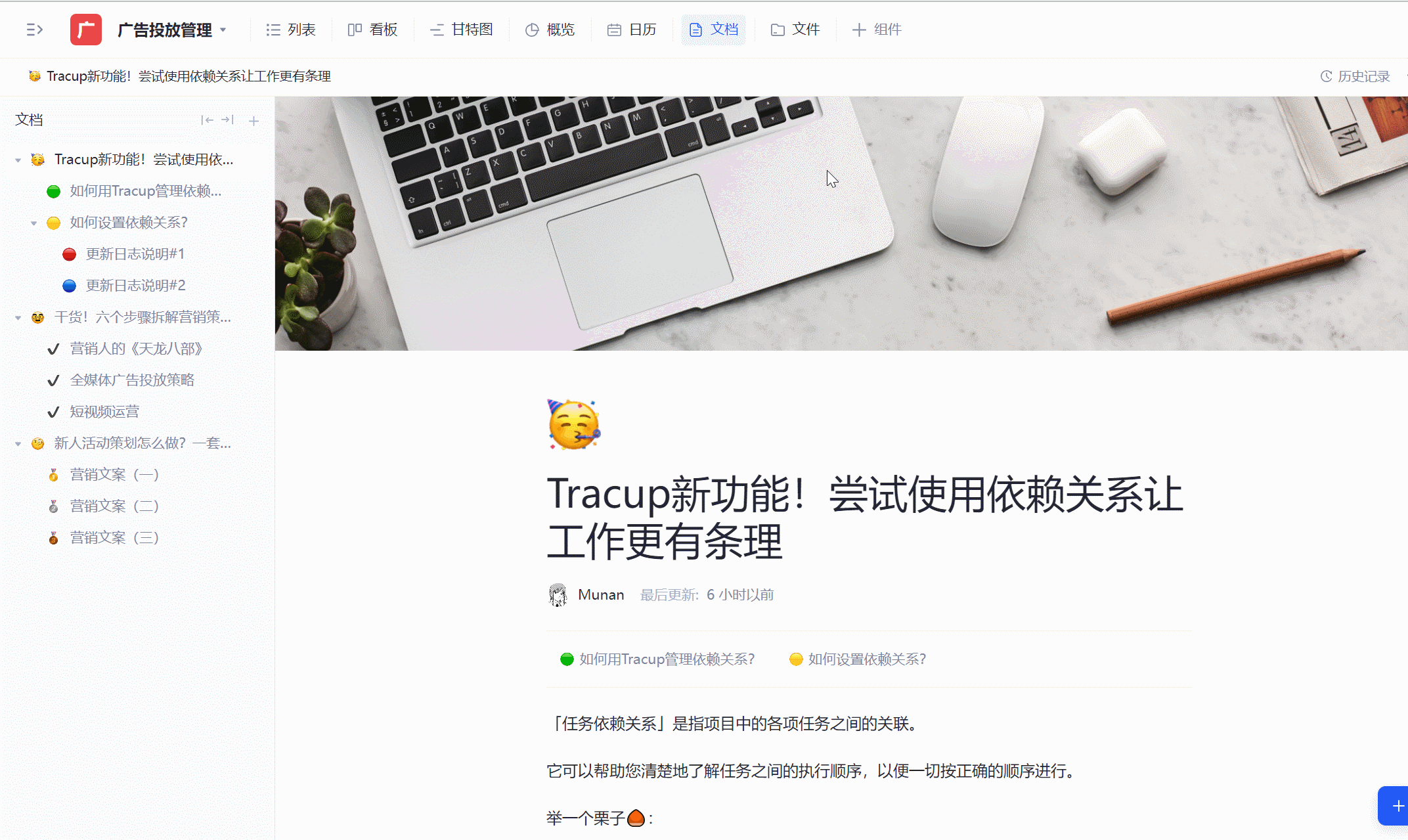 Tracup新功能又准时和您见面啦!「文档」功能全新升级;工作区支持自定义logo;增加快速帮助通道……