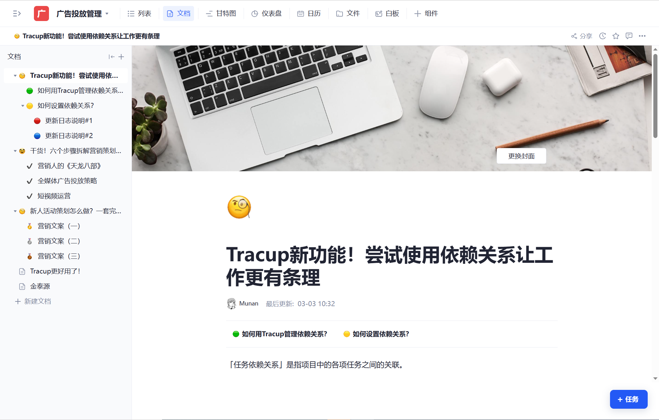 Tracup提供了一系列功能,使其成为团队宝贵的工具之一。其中一个关键功能是创建和分享知识文章。团队成员可以撰写有关他们的经验、所学到的教训和最佳实践的文章。这些文章可以轻松地与团队的其他成员共享,确保每个人都可以访问团队的集体知识。