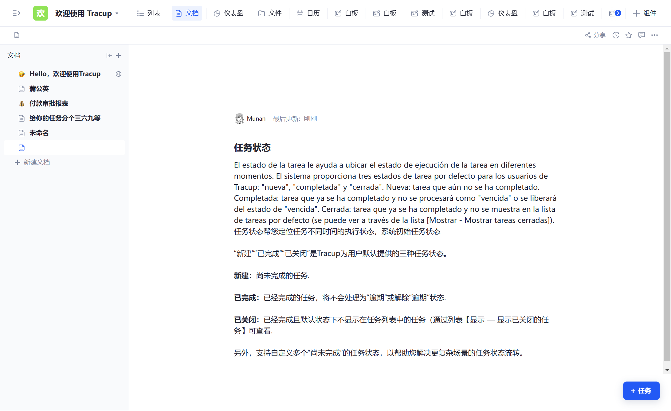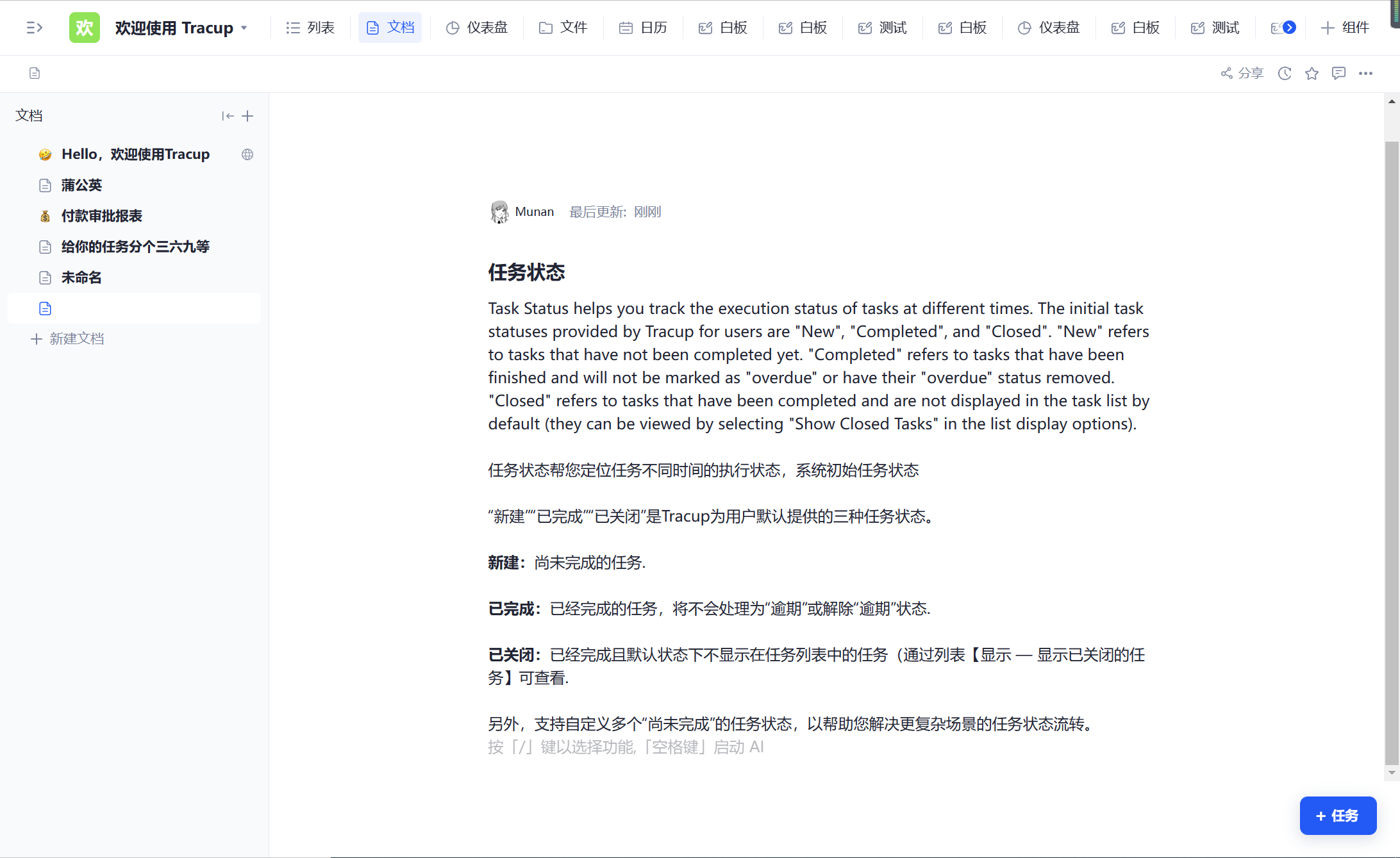 多语言支持让跨国团队更容易进行沟通和协作。无论您和您的团队成员来自何处,使用Tracup文档都能够消除语言障碍,确保信息的准确传达。在Tracup文档中,您可以轻松地创建和分配任务、跟踪进度、共享文件和讨论问题,而不必担心语言沟通上的问题。