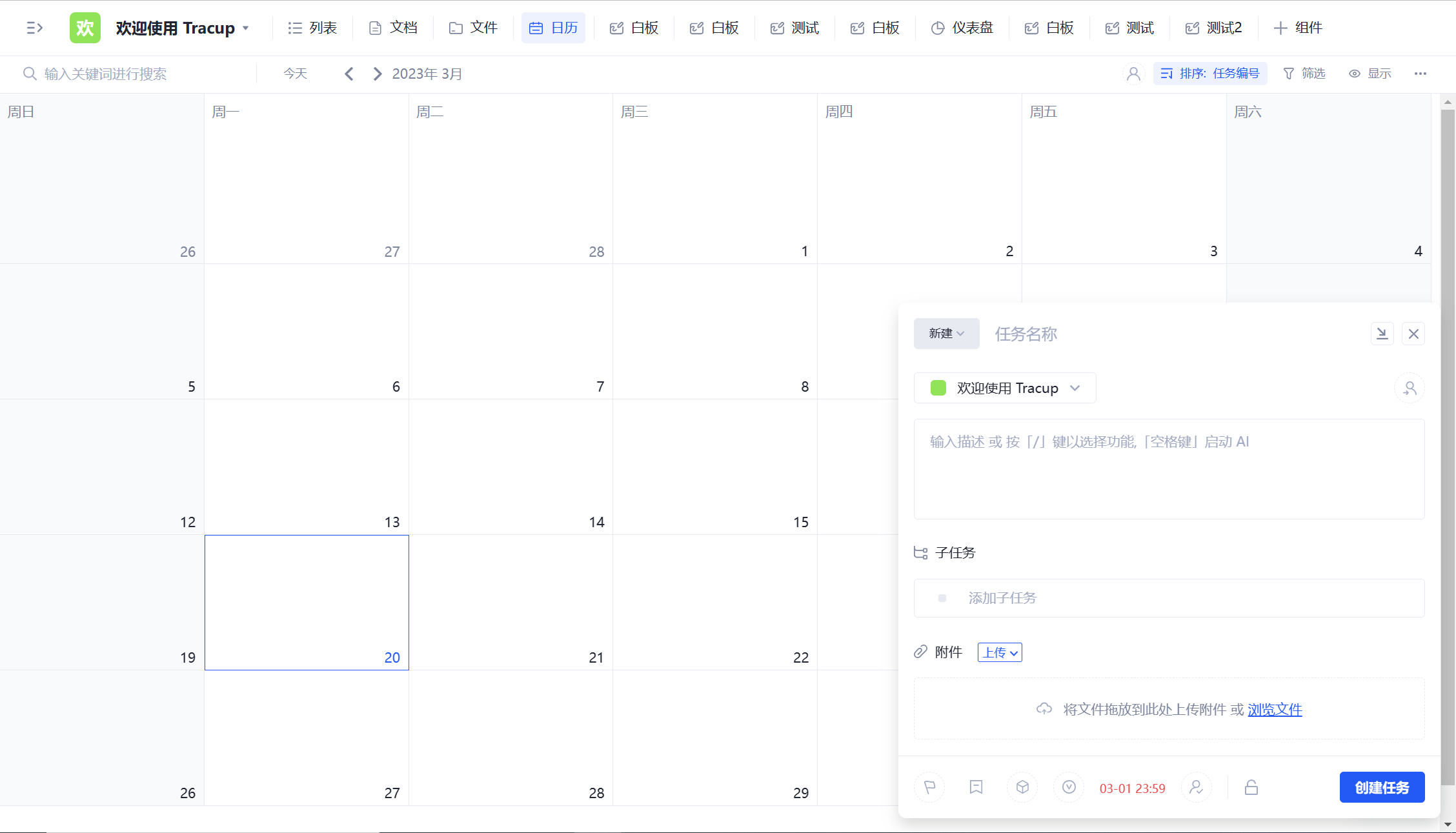 Tracup的日历插件可以帮助用户快速查看任务和项目的时间安排,让用户更加方便地规划工作。
